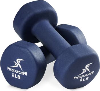 ProsourceFit set of two Neoprene Dumbbells are ideal for helping you get started with strength training and for improving your fitness. Strengthen and sculpt muscles with soft coated dumbbells that are gentle on hands and prevent callouses, yet provides a non-slip grip for optimal performance and safety. Perfect for group training classes, personal training and at-home workouts, the protective coating is safe for floors and the hexagonal shape prevents the weights from rolling around when you set them down. Color-coded weights help you easily eye the right weight for the exercise you’re performing. The lighter weights can be used while walking and for physical therapy, as well as general toning. Heavier weights are great for exercises like shoulder presses, bicep curls, weighted lunges, triceps extensions, chest presses, weighted squats and much more!