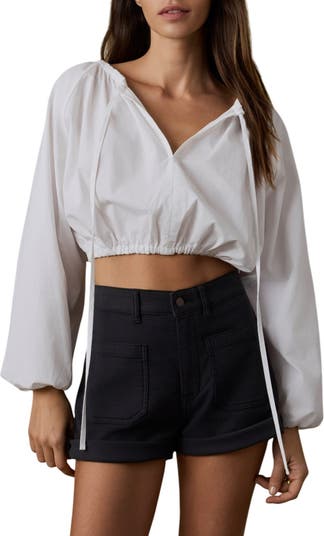 Long balloon sleeves and a cropped silhouette add to the laid-back vibe of this lightweight cotton poplin shirt.