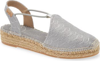 An espadrille sole enhances the earthy, vintage style of an handcrafted sandal featuring a richly textured vamp and ankle strap.