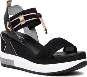 Sporty-chic goes glam in this chunky wedge sandal boasting drawcord-toggle lacing, breezy mesh straps and a bold, sneaker-inspired platform sole.