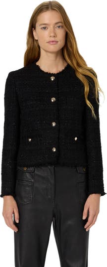 Rendered in tweed enhanced with a hint of lurex and adorned with frayed finishes, the Nessa tweed jacket combines classic elegance with a contemporary look.