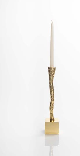 Statement-making, sculptural candle holders on pedestals make distinctive accent pieces. Sand cast and entirely hand-made by highly skilled artisans. Holds standard tapers.