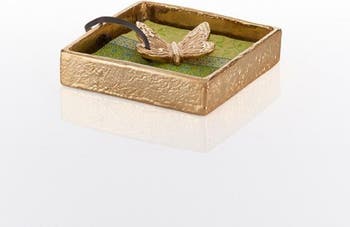 A bird in flight, the nurturing warmth of a nest, the spiritual comfort of the angel wing. The FEATHERS COLLECTION has a wonderful array of symbolism. Practical and elegant, the Nest Cocktail Napkin Holder holds standard Size cocktail napkins with the gold butterfly acting as a weight for napkins. The butterfly is attached with a leather thong to the box, so it doesn't fly away! Each of our creations is designed in our San Francisco studio. Master craftsmen using centuries old technique of sand casting create the original mould and skilled artisans hand create every piece, with pride, in our family owned factory.