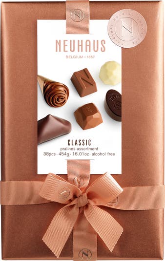 This delectable gift includes a selection of 38 milk, dark and white Belgian chocolates featuring an assortment of fillings and packaged in a beautiful ribbon-tied box, making it the ideal gift for any special occasion.