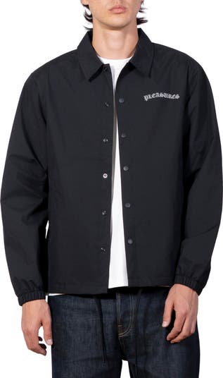 Gothic logo details mark the chest and arch shoulder-to-shoulder across the back of a coach's jacket fastened with tonal snaps to keep the details simple and the focus on the branding. A lightweight lining adds an extra layer of protection to keep you looking cool when the temperatures cool.