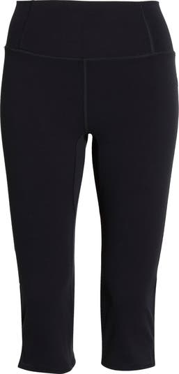 A must-have for your everyday wardrobe, these leggings are cut in a knee-length silhouette with a high-rise waistband and slight flare at the notched hems.