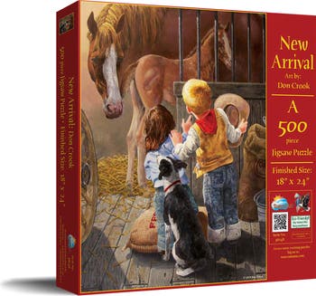 Dive into a world of mesmerizing artistry with the New Arrival 500 pc Jigsaw Puzzle by SunsOut, featuring captivating artwork by Don Crook. Offering an enchanting journey brought to life piece by piece, this puzzle's charming representation of animals and children captivates aesthetic lovers. Made from high-quality recycled cardboard, the SunsOut puzzle provides perfectly interlocking pieces that create an enthralling puzzle experience. Proudly made in the USA, this 500-piece puzzle exhibits excellent American craftsmanship, upholding rigorous manufacturing standards for products that withstand time. Equipped with a worry-free guarantee, SunsOut makes certain to resolve issues with missing or damaged pieces, assuring peace of mind with every purchase. Moreover, this eco-friendly product utilizes soy-based inks and recycled cardboard, making it an ideal choice for those consciously making an effort to reduce their ecological footprint. Further adding to its charm, the finished puzzle measures 18" x 24", beautifying any space with its artistic flair whether framed or laid on a coffee table. Enclosed in a large, full-color display box, the New Arrival puzzle presents an ideal gift for puzzle enthusiasts. Experience the magic of art and puzzle-solving with SunsOut Puzzles, where every piece narrates a tale and the satisfying click of completion brings joy.