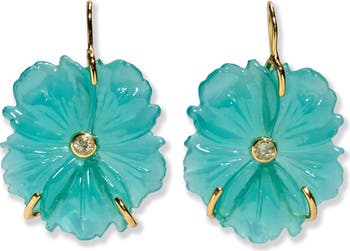 Glistening flower-shaped glass brings the tropical vibes to these drop earrings bezel set with sparkling lemon quartz centers.