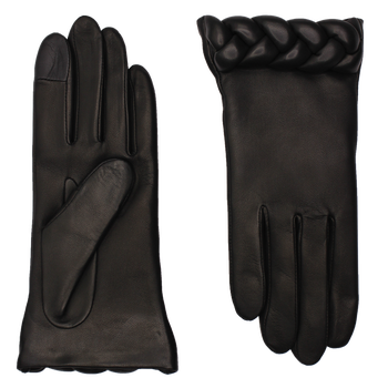 The New Edith glove features a pretty braided design, like a bracelet around the wrist. Its elasticated wristband provides a perfect fit, while its silk lining keeps the hand slim and elegant. The black style is compatible with smart devices.