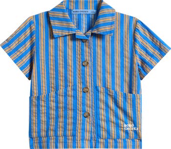 Your little one can sport cool, laid-back style from day one with this boxy button-up shirt woven from airy cotton patterned in stripes with definite vacay vibes.