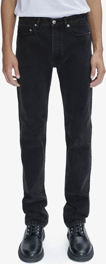 Nonstretch denim in a cool dark wash furthers the old-favorite appeal of jeans styled with straight legs and a fit that stays comfortable day and night.