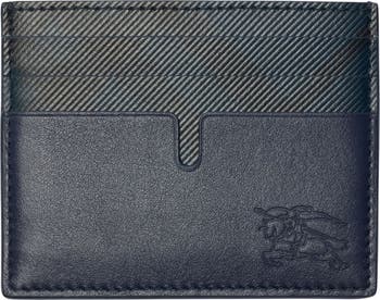 This double-sided card holder with a center pocket and six card slots is made in a mix of leather and ridged coated canvas.