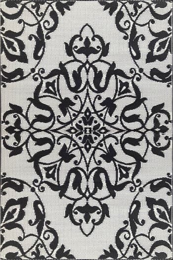 The ornate scroll work of wrought iron outdoor furnishings and grilles has dressed-up patios, balconies and back yards since the 17th century. Fully weather proof, they look great on patios, decks, and poolside. And as all our products, these mats are utterly carefree and easily cleaned with garden friendly soap and a hose. Mad Mats® are made from 100% recycled plastic, are UV protected and fade-proof, and come with our one-year color guarantee. Because our rugs are handmade, pattern, color and size may vary slightly.