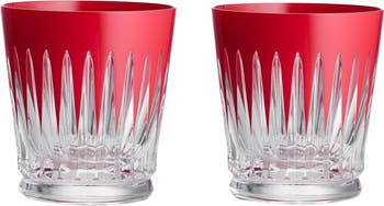 This pair of crystal glasses starts the year off with a bang showcasing rich color and bold linear cuts that bring vibrant elegance to every toast.