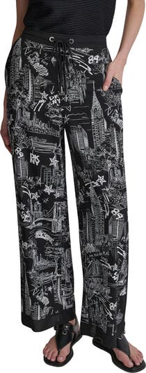 An artistic print paying homage to New York City takes center stage on these statement-making wide-leg pants.