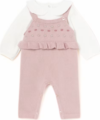 - Pink knitted romper with shoulder straps