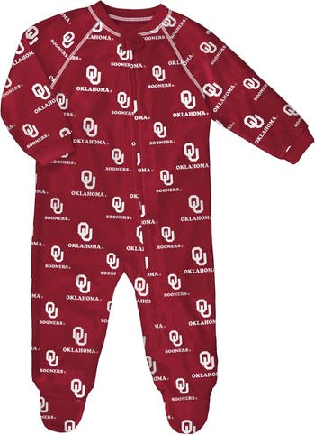 Introduce your favorite little fan to the Oklahoma Sooners with this All-Over Print Raglan Full-Zip Coverall from Outerstuff. The raglan sleeves and flatlock stitching ensure your little one stays comfy, and the full-length zipper and snap closure at the neck make changes a breeze. Plus, the all-over print featuring team logos lets them show their new love for the Oklahoma Sooners.