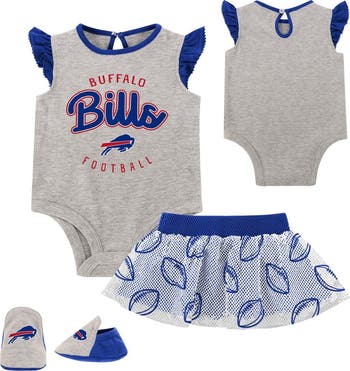 Newborn Heather Gray/Royal Buffalo Bills All Dolled Up Three-Piece Bodysuit, Skirt & Booties Set