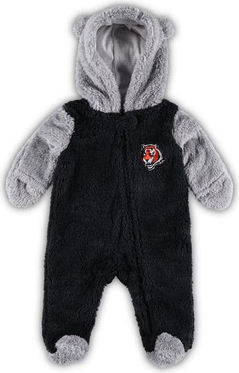 Newborn & Infant Black/Gray Cincinnati Bengals Game Nap Teddy Fleece Bunting Full-Zip Sleeper
