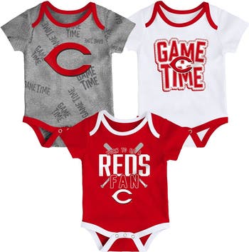 Newborn & Infant Cincinnati Reds Red/White/Heathered Gray Game Time Three-Piece Bodysuit Set