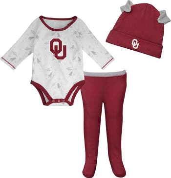 Prepare your little one for the fandom of a lifetime with this Oklahoma Sooners Dream Team set. It includes a bodysuit with long, raglan sleeves, a hat and pants, all decorated with signature Oklahoma Sooners colors and charming graphics. The soft fabric and easy dressing features make this adorable set the perfect game day option.
