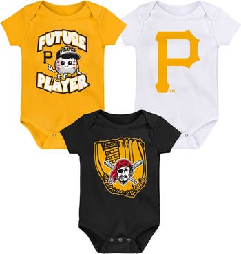 Newborn & Infant Gold/Black/White Pittsburgh Pirates Minor League Player Three-Pack Bodysuit Set