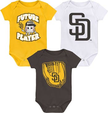 Newborn & Infant Gold/Brown/White San Diego Padres Minor League Player Three-Pack Bodysuit Set