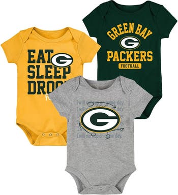 Newborn & Infant Green/Gold Green Bay Packers Eat Sleep Drool Football Three-Piece Bodysuit Set