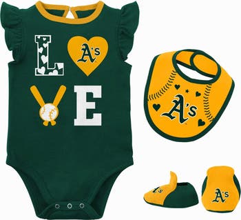 Newborn & Infant Green/Gold Oakland Athletics Three-Piece Love of Baseball Bib Bodysuit & Booties Set