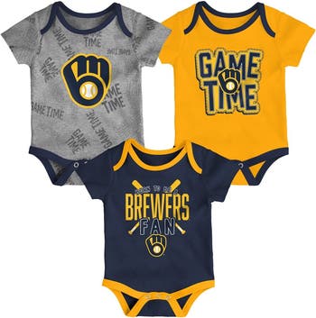 Newborn & Infant Milwaukee Brewers Navy/Gold/Heathered Gray Game Time Three-Piece Bodysuit Set