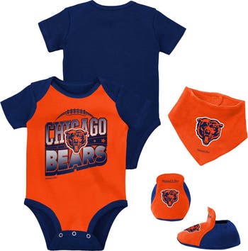 Newborn & Infant Mitchell & Ness Orange/Navy Chicago Bears Throwback Big Score Bodysuit, Bib & Bootie Set