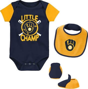 Newborn & Infant Navy/Gold Milwaukee Brewers Little Champ Three-Pack Bodysuit Bib & Booties Set