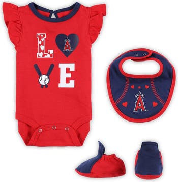 Newborn & Infant Red/Navy Los Angeles Angels Three-Piece Love of Baseball Bib Bodysuit & Booties Set
