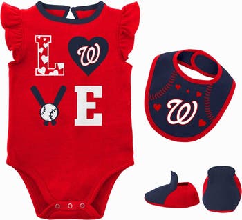Newborn & Infant Red/Navy Washington Nationals Three-Piece Love of Baseball Bib Bodysuit & Booties Set