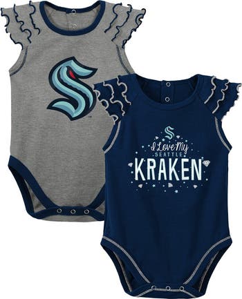 Get the youngest Seattle Kraken fan in the family geared up with this Shining All-Star bodysuit set. This set features two bodysuits with fun team graphics and ruffled details. The snap closures make these Seattle Kraken bodysuits easy to slip on and off so you don't miss a second of the on-ice action.