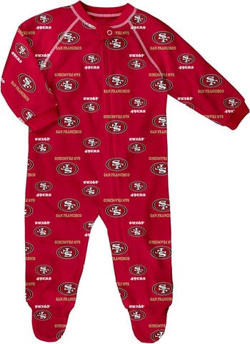 Provide your budding San Francisco 49ers fan with comfort and spirit each night by dressing them in this full-zip jumper. It features roomy raglan sleeves so they can stretch, crawl and sleep in comfort. An allover San Francisco 49ers print easily displays which team they'll root for each Sunday.