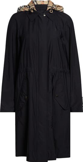 Framed with raglan sleeves for a softly curved shoulder, this relaxed-fit coat cut from lightweight nylon stretch twill comes with Burberry Check-pattered removable hood for unpredictable weather.