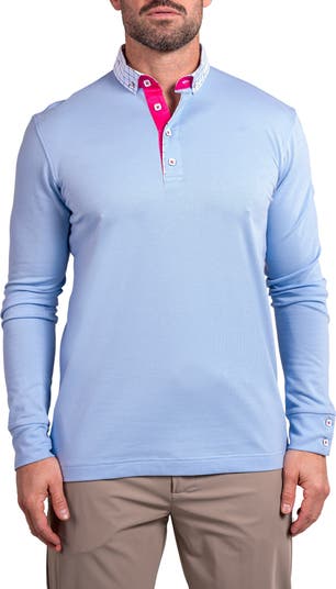 A smart play on polish, this long-sleeve polo flips the script with color pops and contrast, tagging the button-down collar, the standout placket and the sly side slits, while a stretch-enhanced cotton blend keeps comfort locked in.