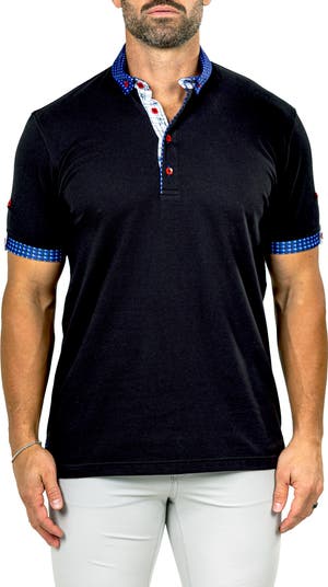 A stretch-enhanced piqué knit made in part with breathable cotton brings everyday comfort to a polo cut in an athletic, physique-hugging fit. Contrast panels pop at the button-down collar and roll-tab sleeves for a look that lets you go sporty or casual depending on your mood or the occasion.