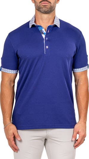 A stretch-enhanced piqué knit made in part with breathable cotton brings everyday comfort to a polo cut in an athletic, physique-hugging fit. Contrast panels pop at the button-down collar and roll-tab sleeves for a look that lets you go sporty or casual depending on your mood or the occasion.