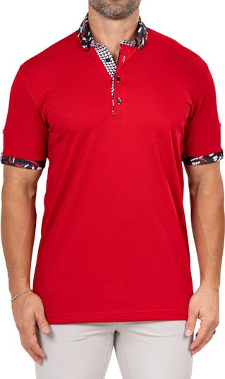 A stretch-enhanced piqué knit made in part with breathable cotton brings everyday comfort to a polo cut in an athletic, physique-hugging fit. Contrast panels pop at the button-down collar and roll-tab sleeves for a look that lets you go sporty or casual depending on your mood or the occasion.