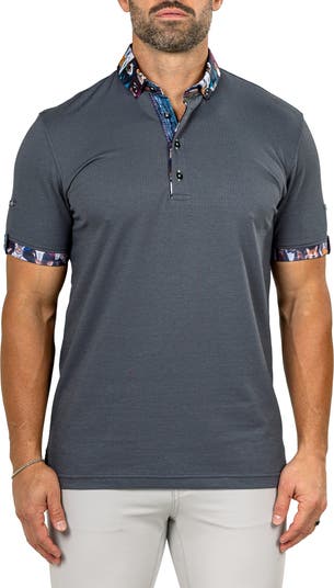 A stretch-enhanced piqué knit made in part with breathable cotton brings everyday comfort to a polo cut in an athletic, physique-hugging fit. Contrast panels pop at the button-down collar and roll-tab sleeves for a look that lets you go sporty or casual depending on your mood or the occasion.