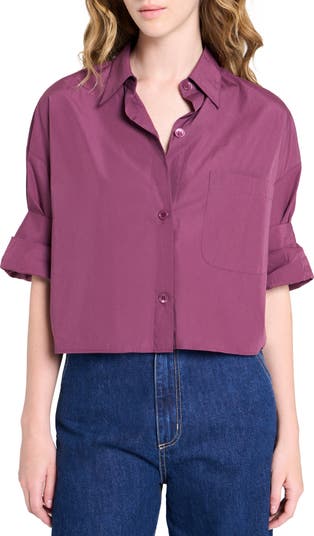 Cropped and boxy with a fit that looks like you nabbed it from his closet, this cotton button-up is finished with long sleeves that fold up to the elbows via TWP's signature double-roll button cuffs.