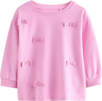 Ribbed trim and bow appliqués made of grossgrain ribbon lend texture and dimension to this all-cotton sweatshirt.
