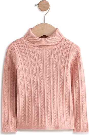 Braided cables lend classic cold-weather detailing to a kid-sized sweater knit from soft cotton-blend yarns for comfort in the classroom or on weekend outings.