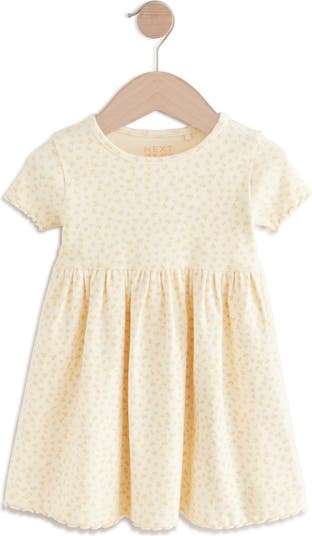 Warm weather days were made for this ribbed stretch-cotton dress covered in a flowery print your little one will adore. Crimped lettuce edges complete the cute look.