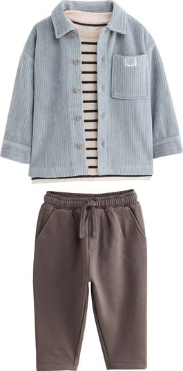 A soft corduroy jacket adds a perfect layer of warmth to your kiddo's look in this T-shirt and pants set made from a comfortable cotton blend perfect for classroom days and weekend outings.