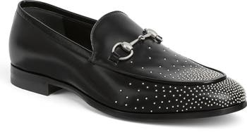 Signature Horsebit hardware nods to the label's equestrian heritage in this glossy leather loafer designed with a sleek apron toe embellished with gradient-effect studs.
