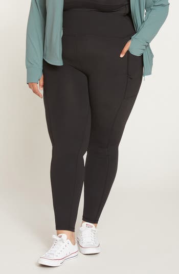 Contoured side panels enhance the second-skin fit of ultrasoft, stretchy leggings finished with handy side pockets.