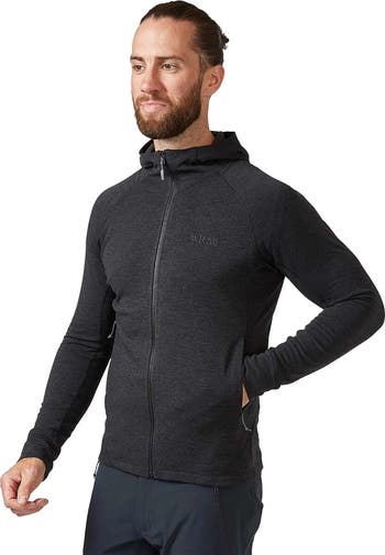 Built for stop-and-go activities in changing alpine conditions, the Nexus Hooded Jacket adds movement-friendly warmth on our chilly hikes, climbs, and scrambles. The Thermic G material features a durable face fabric and grid-back fleece that excels in providing temperature-regulating and moisture-managing comfort.